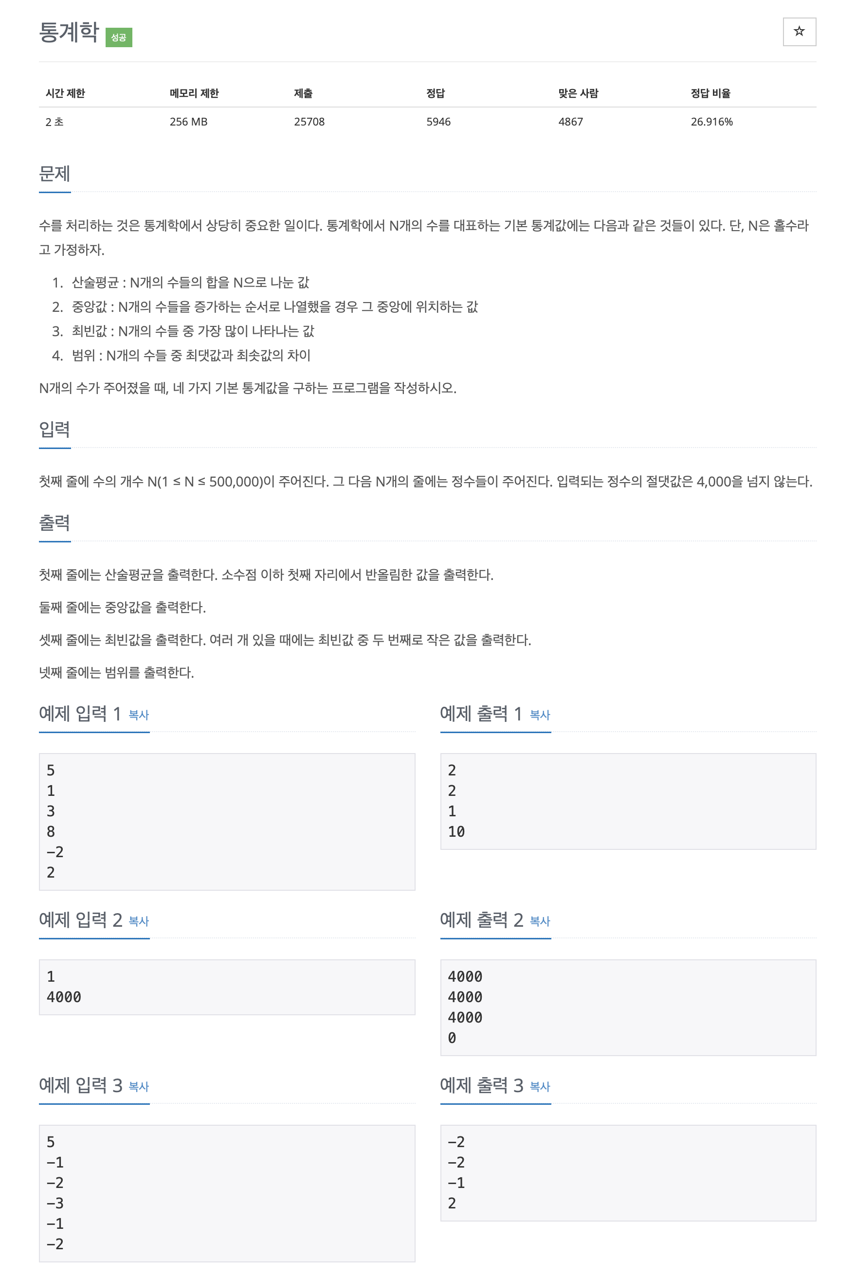2108번: 통계학