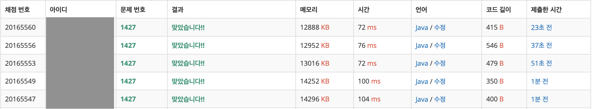 여튼 여러분들도 위 방법들 말고도 다른 방식으로 조합해보면서 풀어보시는 것도 좋은 것 같다.