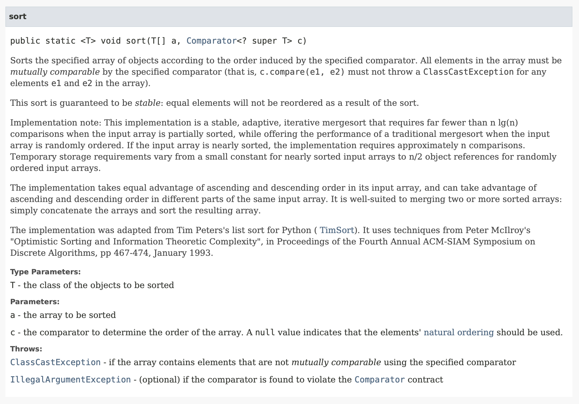 여기서 Comparator<? super T> c 에 대해 이해가 있어야 한다.