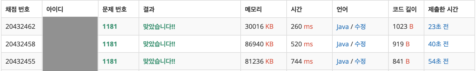 위 알고리즘을 토대로 풀면 문제는 해결된다.