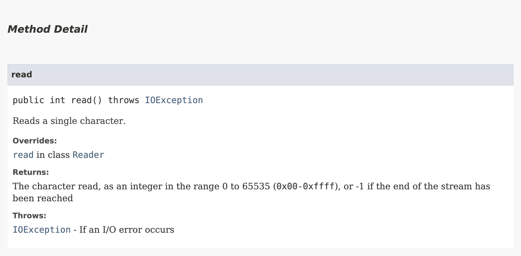 BufferedReader의 read() 도 똑같이 될 거라고 생각하는 사람이 있을 수 있는데 어림도 없다.