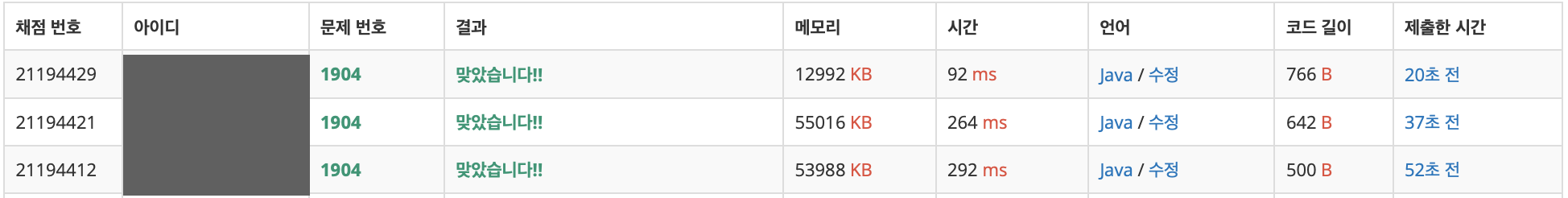채점 번호 : 21194412 - 방법 1 : 재귀 + Scanner
