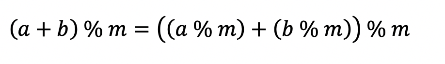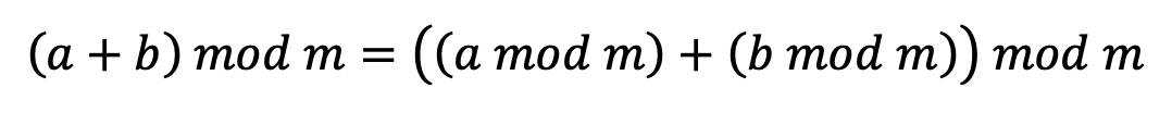 이러한 특징 때문에 모듈러 연산에서 다음과 같은 두 식을 만족한다. 이 것은 알고리즘에서 쓸 일이 많을 것이니 꼭 기억해두시길 바란다.