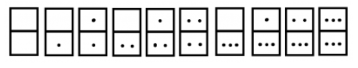 Dominoes are gaming pieces used in numerous tile games. Each domino piece contains two marks. Each mark consists of a number of spots (possibly zero). The number of spots depends on the set size. Each mark in a size N domino set can contain between 0 and N