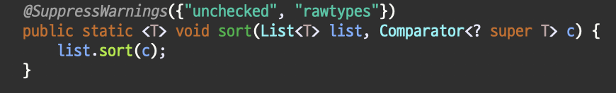 위 코드에서 보듯이 어떠한 형태로든 결국 sort((Comparator<? super E> c) 로 간다. (참고로 상속관계이면서 부모 클래스에서 정렬 방식을 따르는 경우도 생각하여 <? super E>로 하였다. 이러한 경우를 고려하지 않는다면 Comparator<E>로 해주어도 종속관계 영향을 안받는 객체의 경우는 괜찮다.)