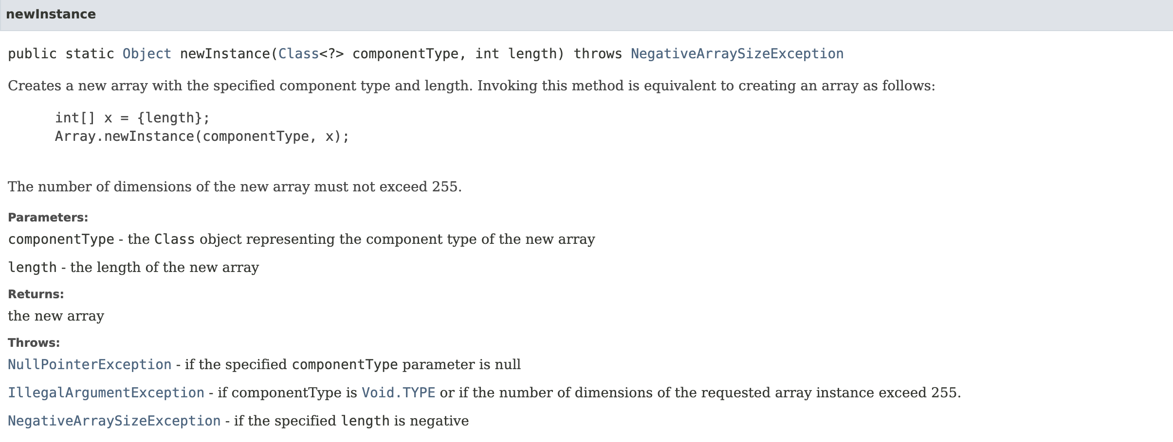 // Arrya.newInstance(컴포넌트 타입, 생성할 크기)