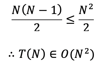 그리고 모든 N에 대하여 다음을 만족하기 때문에 시간복잡도 또한 도출 할 수 있다.