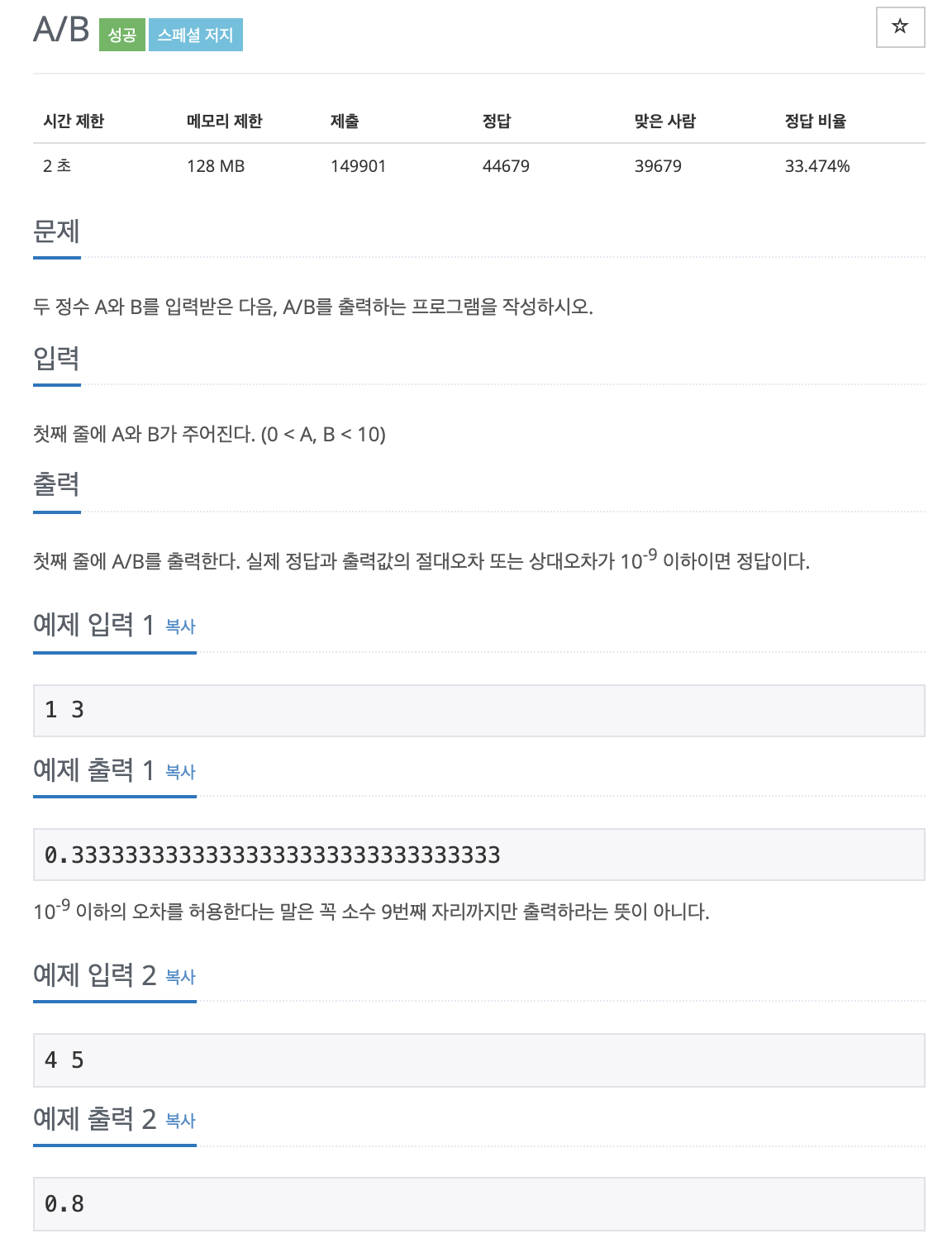 앞서 A+B 에서 풀이 방법은 다 언급해서 이번 A/B 글은 짧게 썼다.