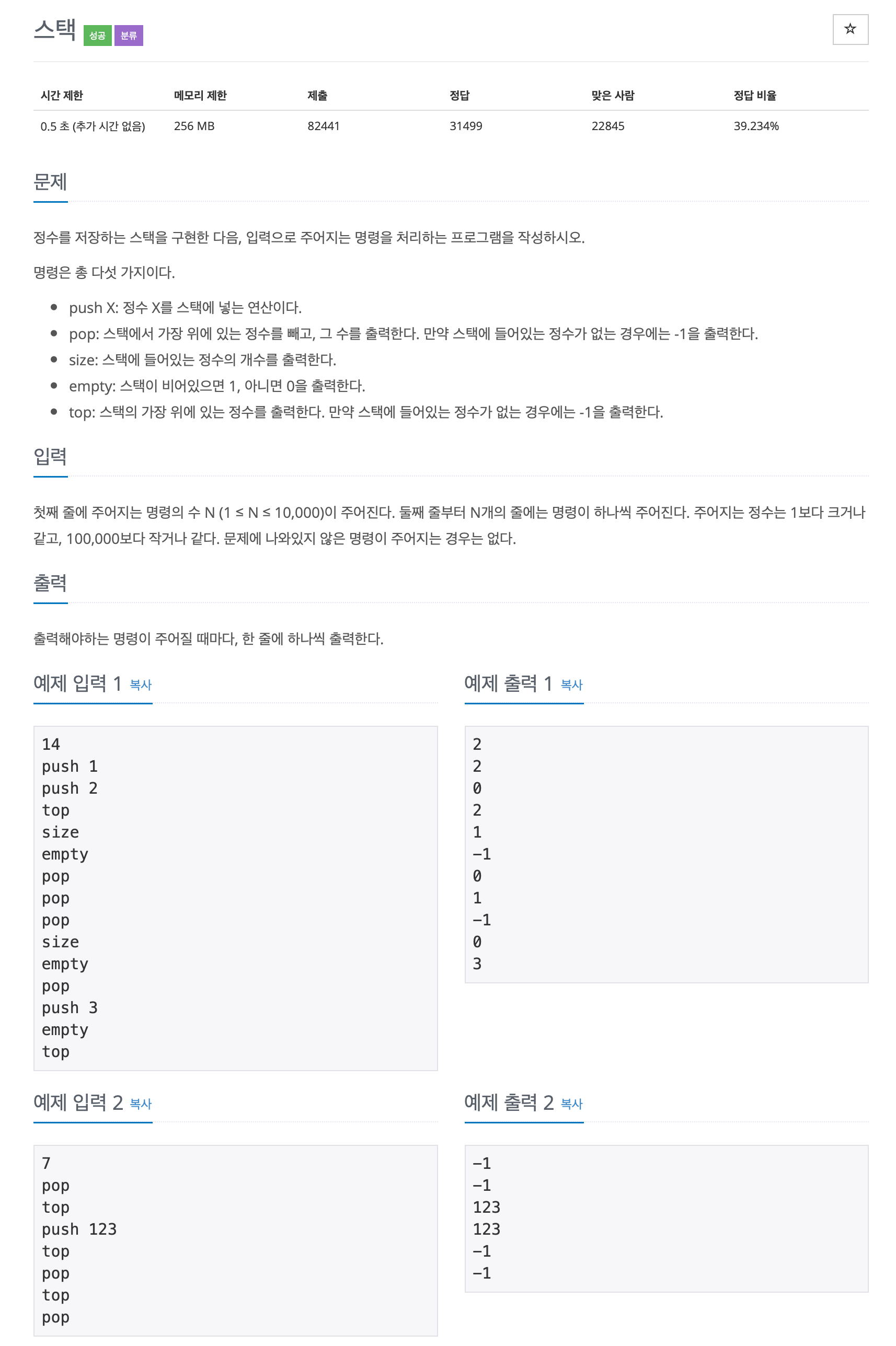 스택 카테고리의 첫 문제는 말 그대로 스택을 이해하느냐에 초점을 두고 있다.