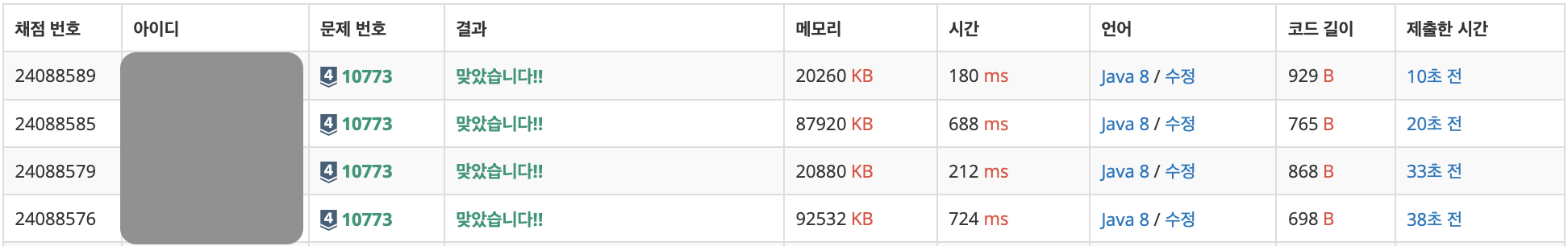 채점 번호 : 24088589 - 방법 4 : BufferedReader + 배열