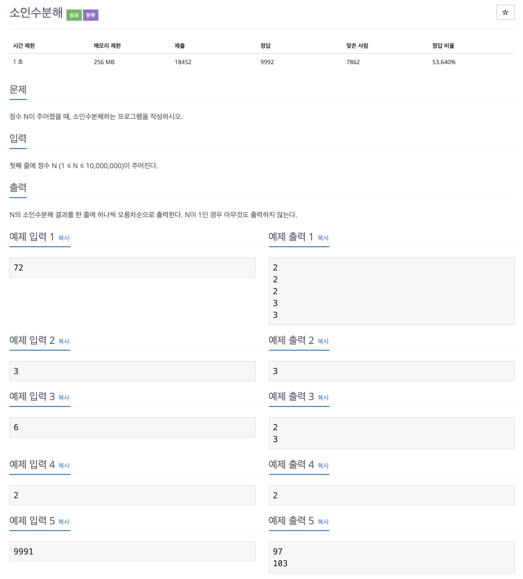 말 그대로 소인수분해를 하는 문제라 쉽게 풀 수 있을 것이다.