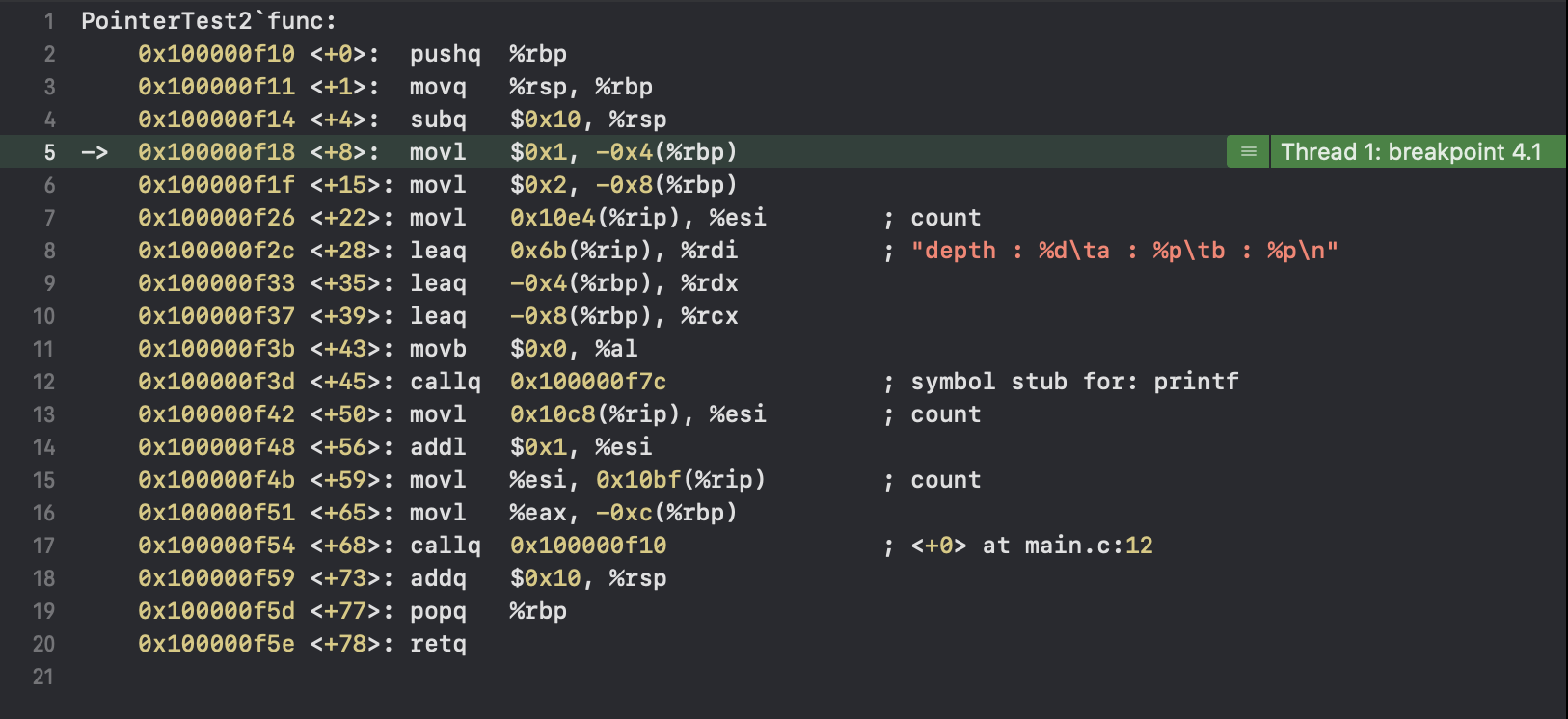 0x100000f18 <+8>: movl $0x1, -0x4(%rbp)