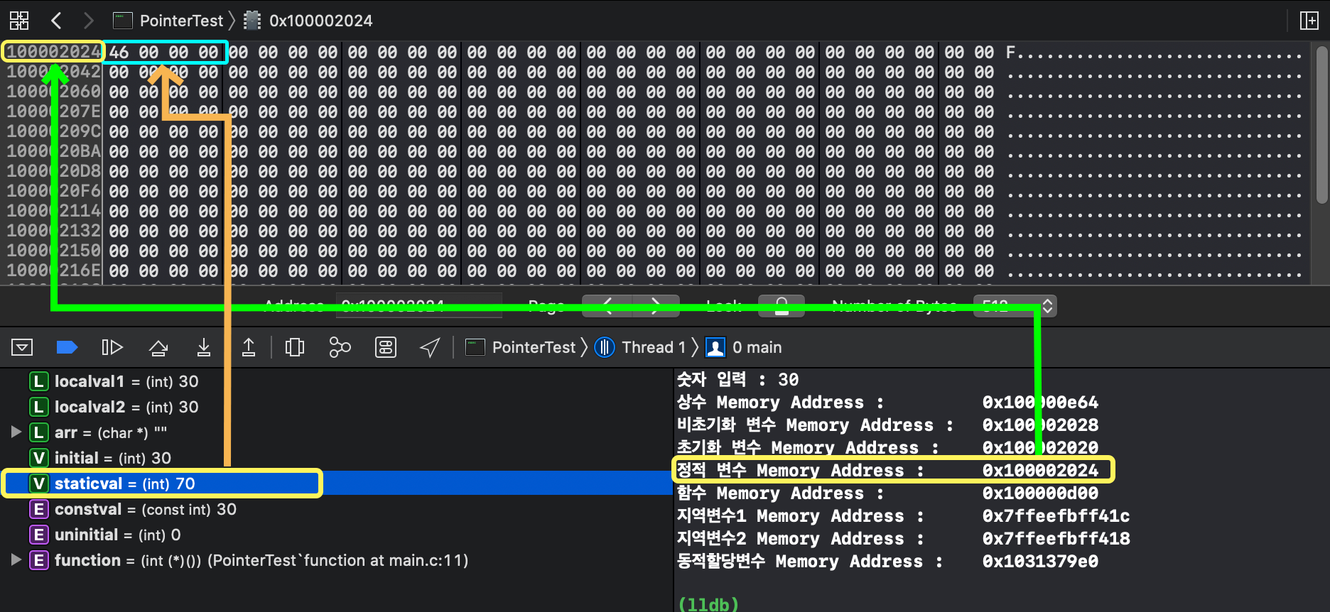 printf("정적 변수 Memory Address : \t %p \n", &staticval);
