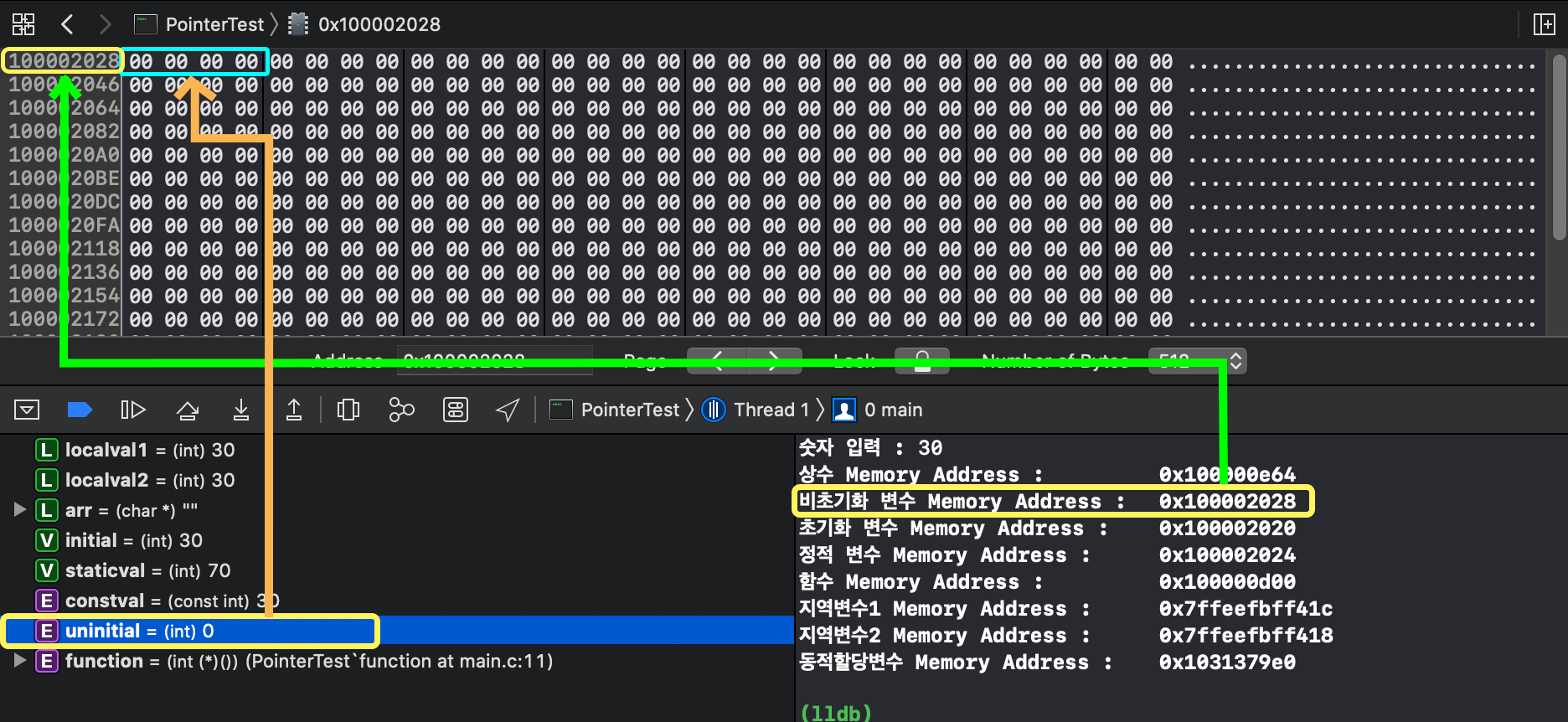 printf("비초기화 변수 Memory Address :\t %p \n", &uninitial);