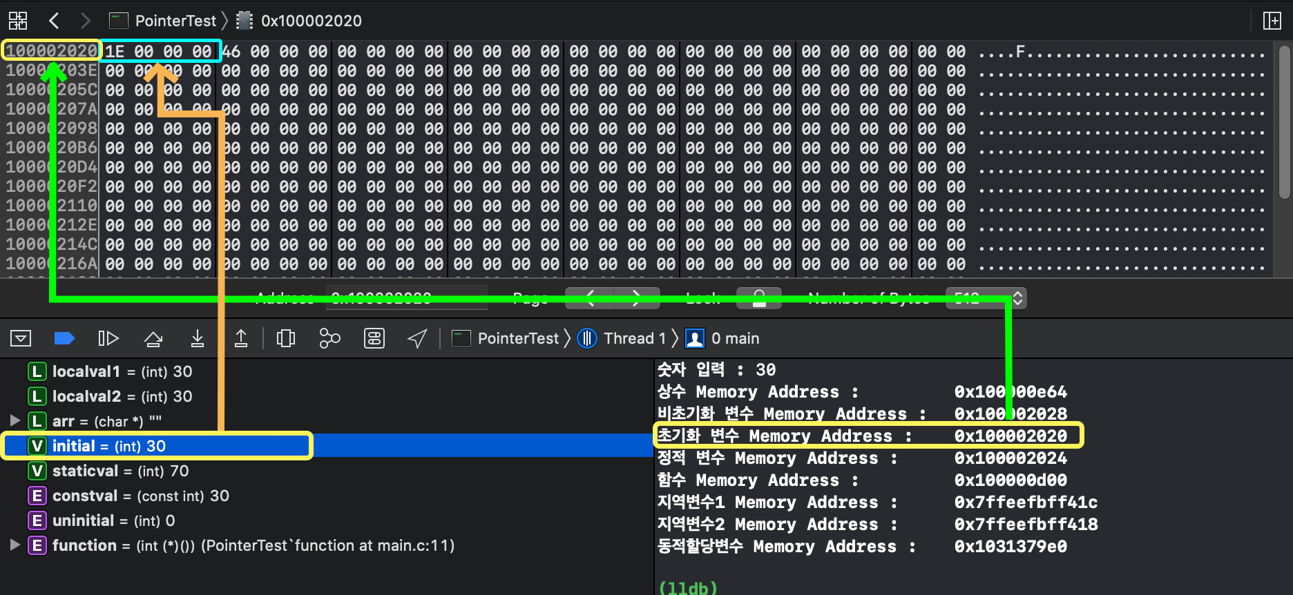 printf("초기화 변수 Memory Address : \t %p \n", &initial);