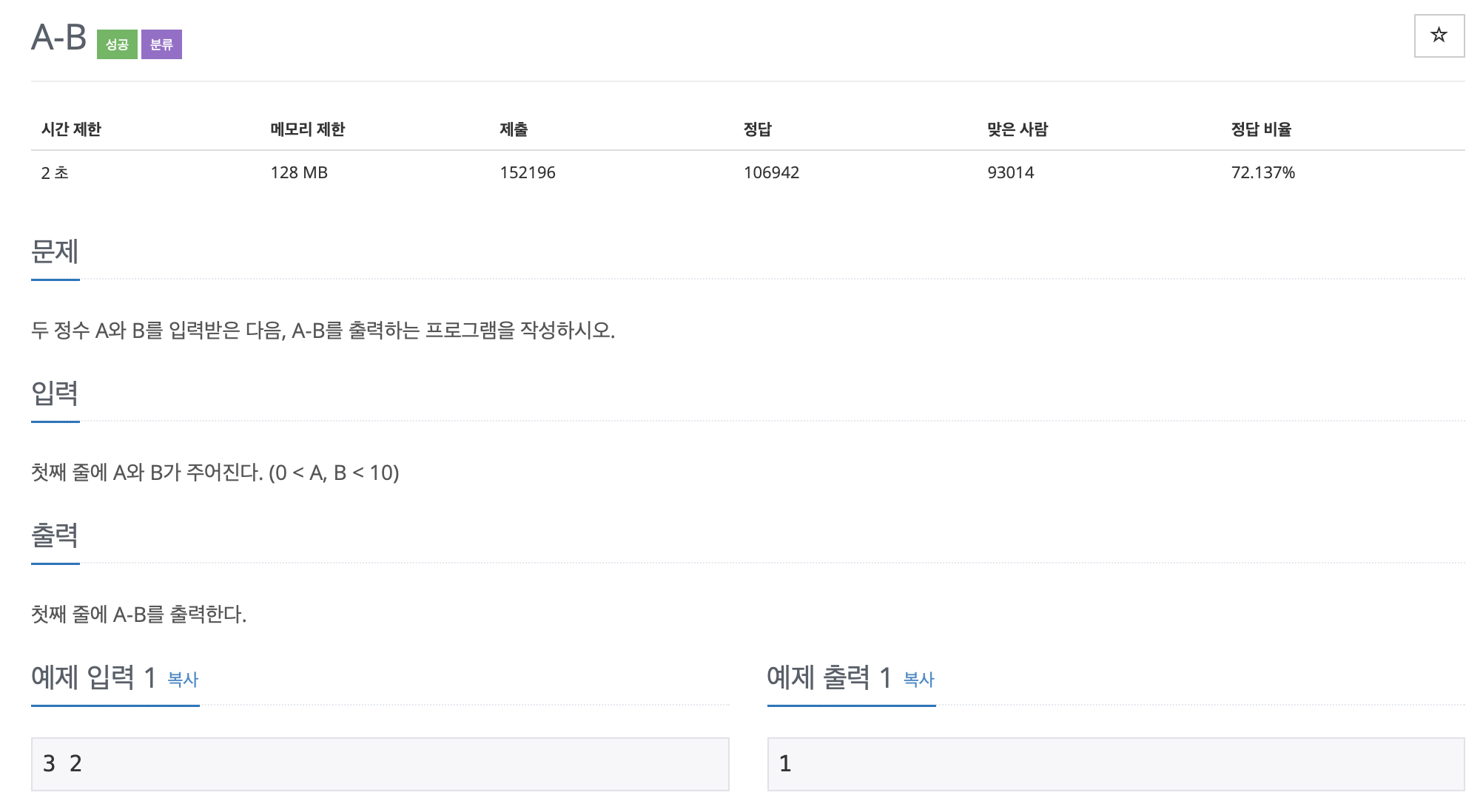 말 그대로 두 개의 정수를 입력받아 처음 입력받은 수에서 두 번째로 입력 받은 수를 빼주면 된다.