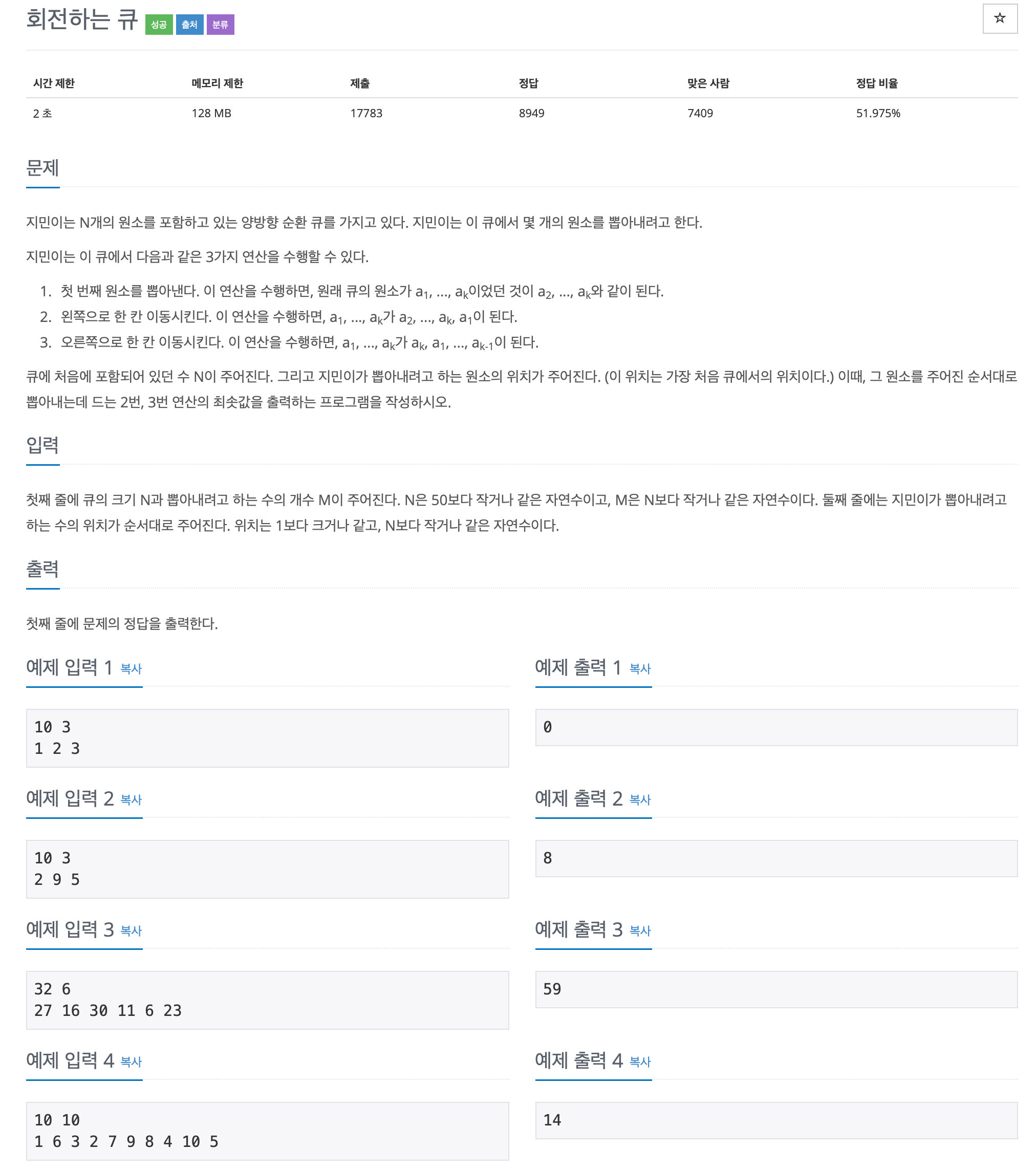 1021번: 회전하는 큐