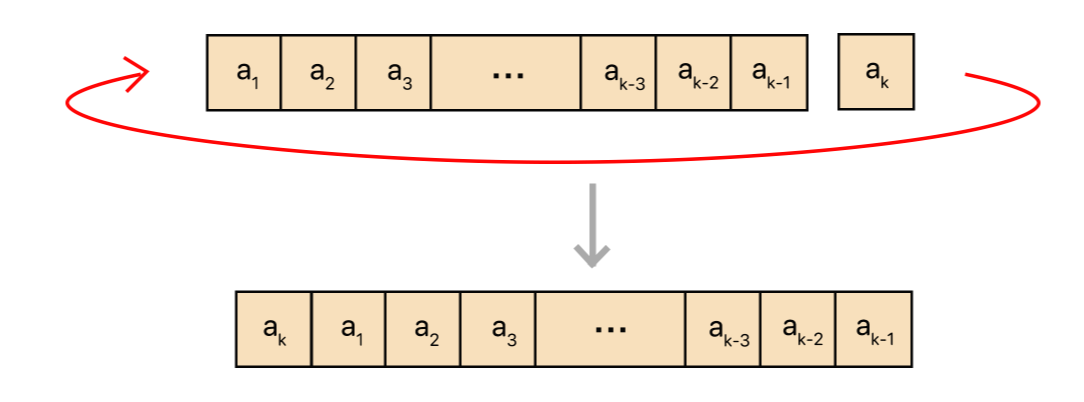 3. 오른쪽으로 한 칸 이동시킨다. 이 연산을 수행하면, a1, ..., ak가 ak, a1, ..., ak-1이 된다.