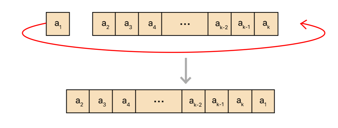 2. 왼쪽으로 한 칸 이동시킨다. 이 연산을 수행하면, a1, ..., ak가 a2, ..., ak, a1이 된다.
