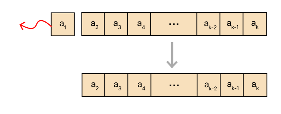 1. 첫 번째 원소를 뽑아낸다. 이 연산을 수행하면, 원래 큐의 원소가 a1, ..., ak이었던 것이 a2, ..., ak와 같이 된다.