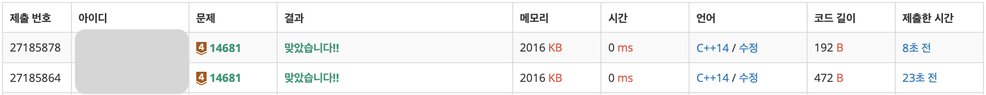 채점 번호 : 27185864 - 방법 1 : 조건문