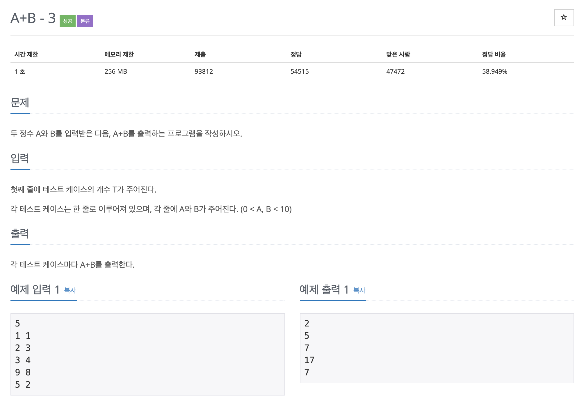 이 번 문제 또한 어려운 점은 없었을 것이다. 다만 앞으로 만날 빠른 A+B에서는 다뤄야 할 것이 좀 많기 때문에 일단 이 문제에서는 간단한 설명으로 마쳤다.