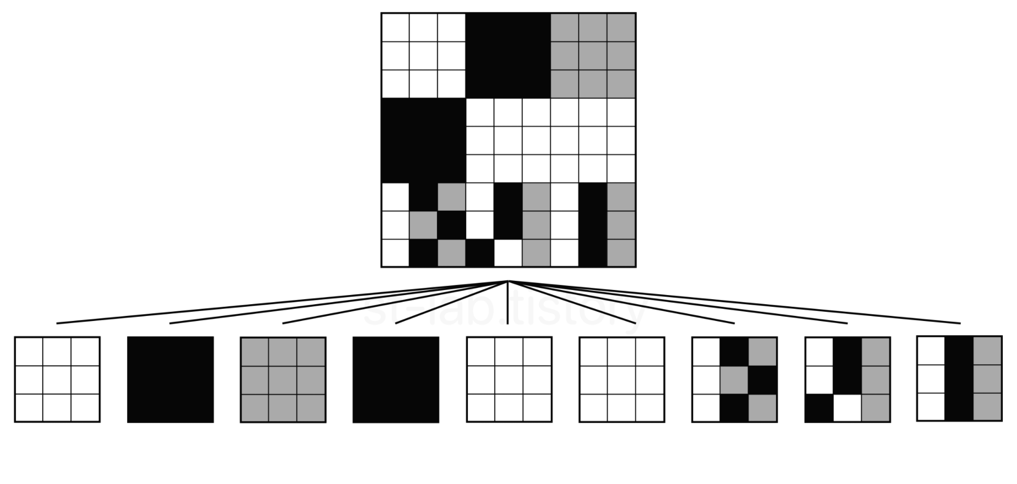 이미지에 대한 기본적인 분할 방식이라 그림으로 보면 직관적으로 이해가 빠르게 될 것이다. 이 후 문제들은 이러한 개념을 이제 어떻게 활용해야하는가의 문제라 개념을 정확하게 알고가시길 바란다.