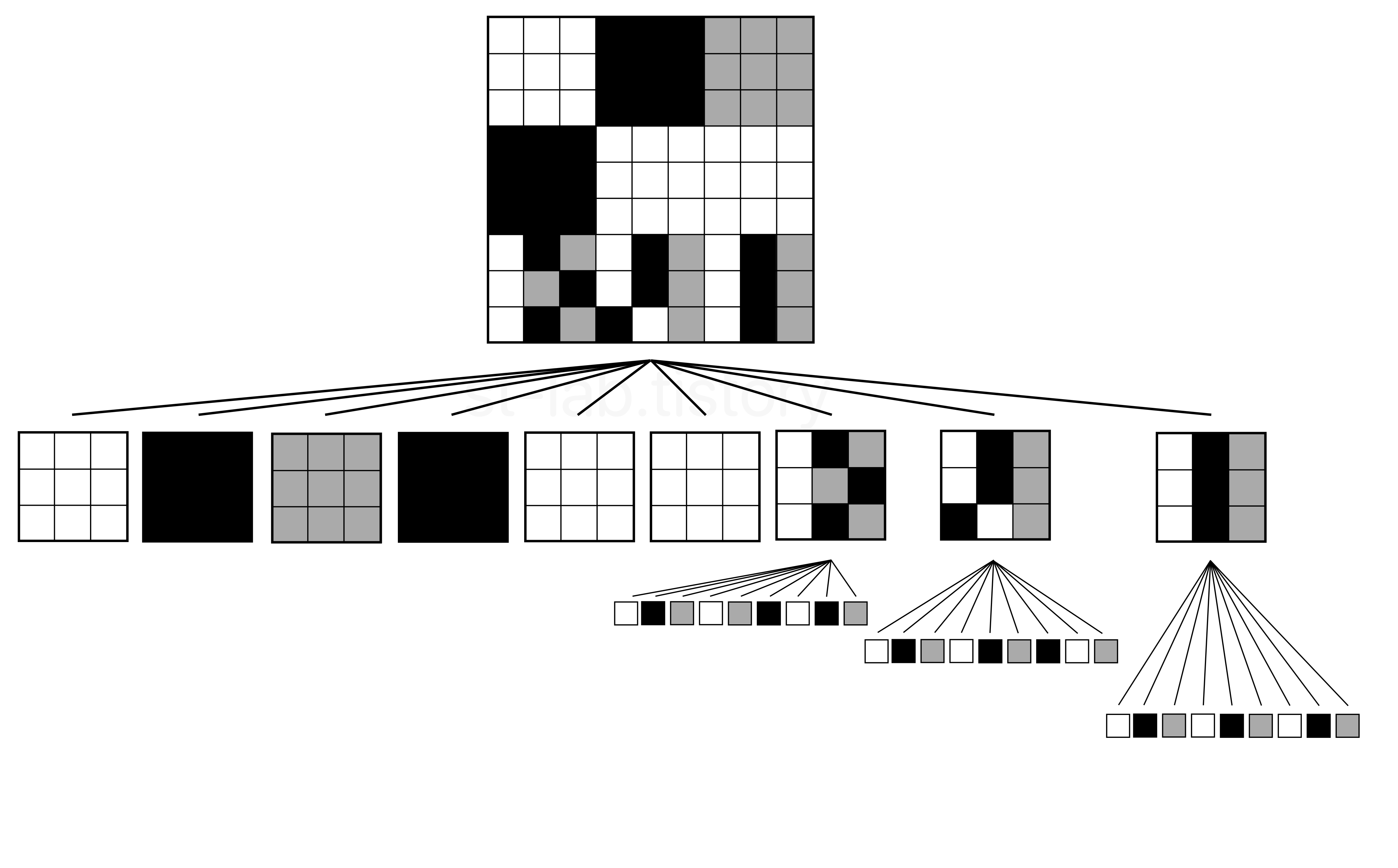 즉, 현재 공간의 크기인 9×9 사이즈에서 가로와 세로를 3으로 나눈 3×3 사이즈 블럭으로 총 9개를 얻을 수 있다.
