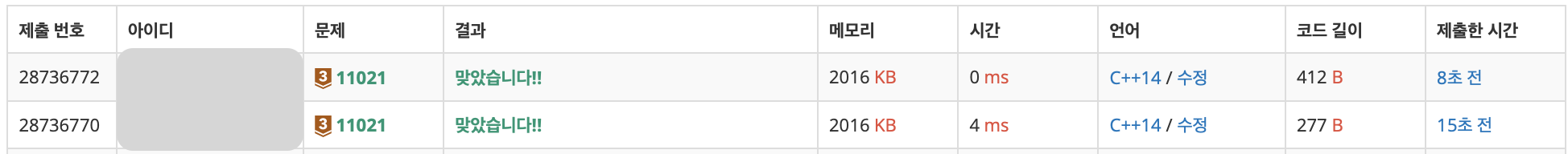채점 번호 : 28736772 - 방법 2 : 향상된 입출력