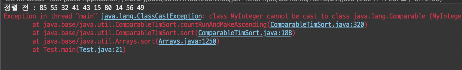 Arrays.sort(arr); // MyInteger에 대한 Comparable을 사용하여 정렬
