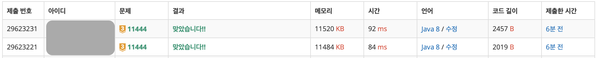 채점 번호 : 29623221 - 방법 1 : 재귀