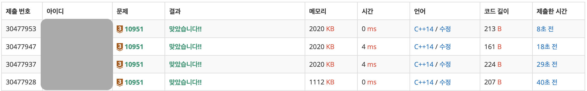 따로 입출력 향상은 비교하는 것은 그렇게 큰 의미는 없을 것 같아서 마지막에 bool값 활용 방식에만 적용하여 테스트를 해보겠다. 즉, 다음과 같이 4가지 방식을 풀이하도록 하겠다.