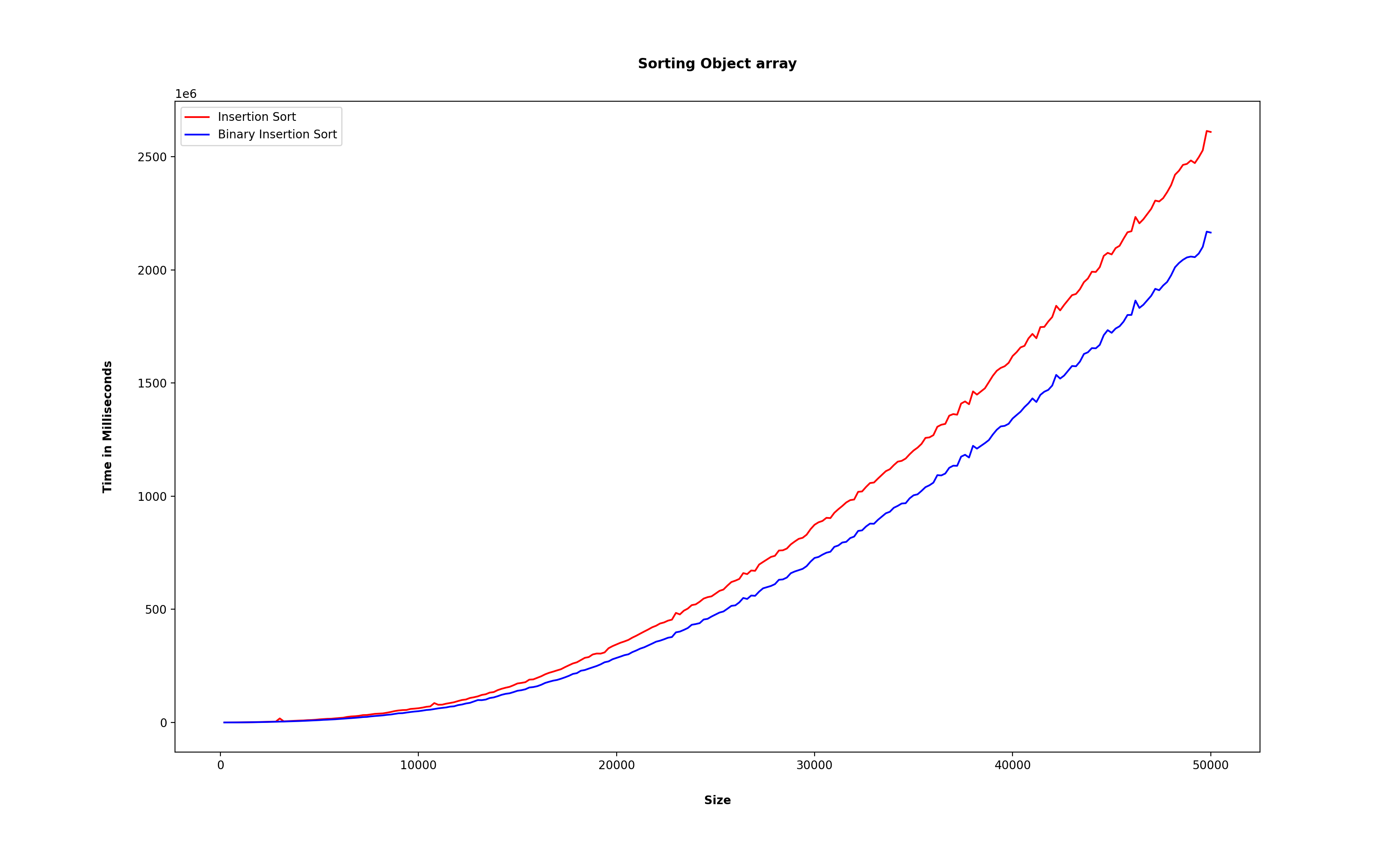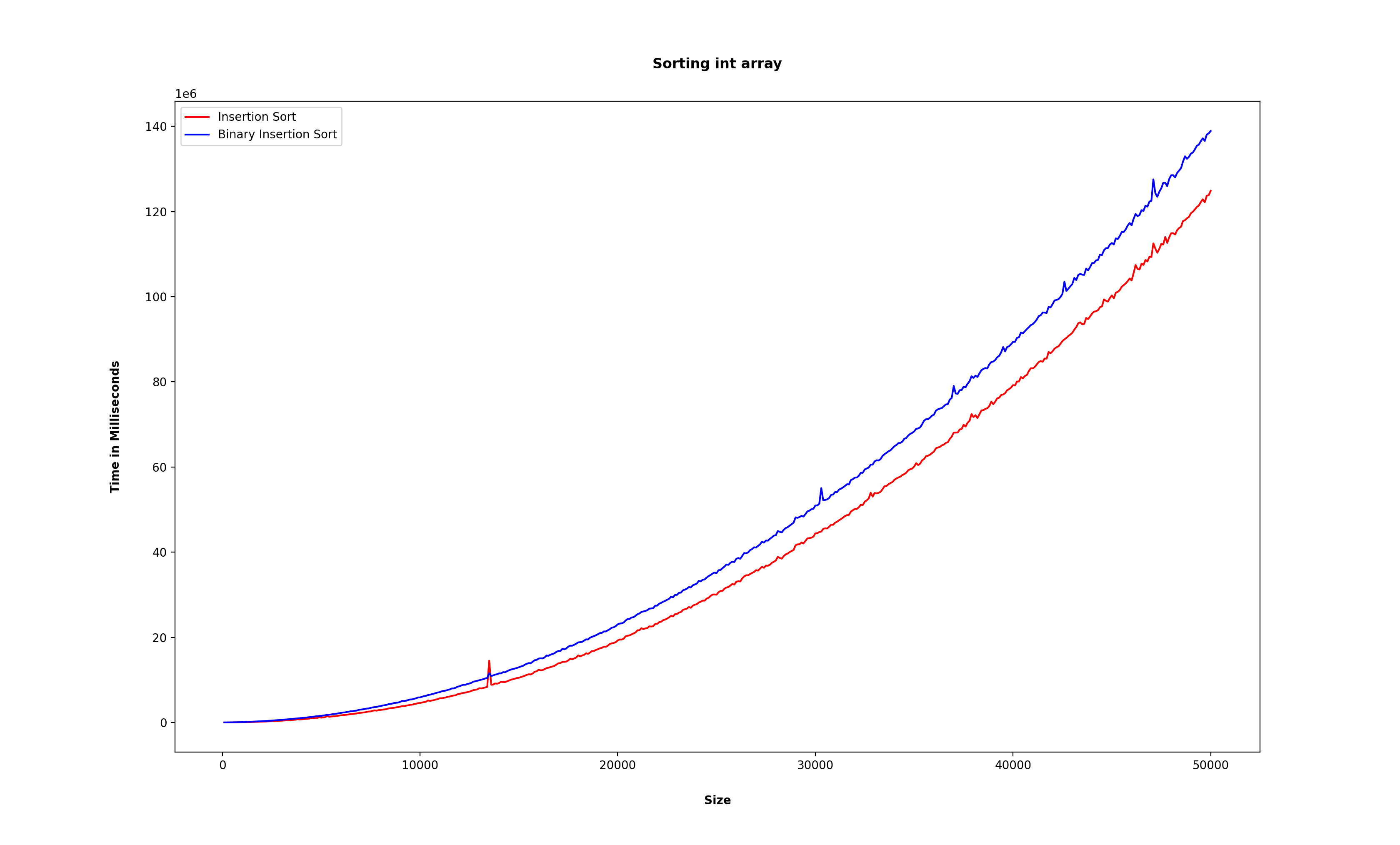 분명 기존의 삽입정렬은 while()문으로 한 번 순회했고, 이진 삽입 정렬은 이분탐색 과정과 원소들을 밀기 위한 순회 과정을 거쳐야 하는데, 오히려 이진 삽입 정렬이 느린 것이 아닌가?