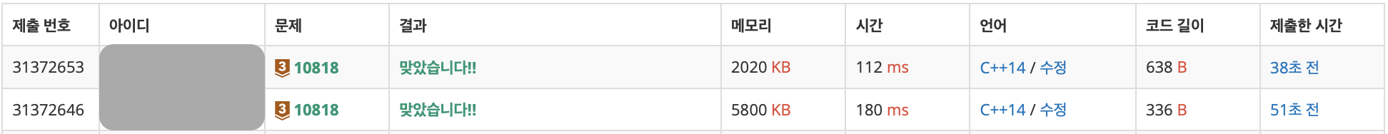채점 번호 : 31372646 - 방법 1 : 배열 사용 방식