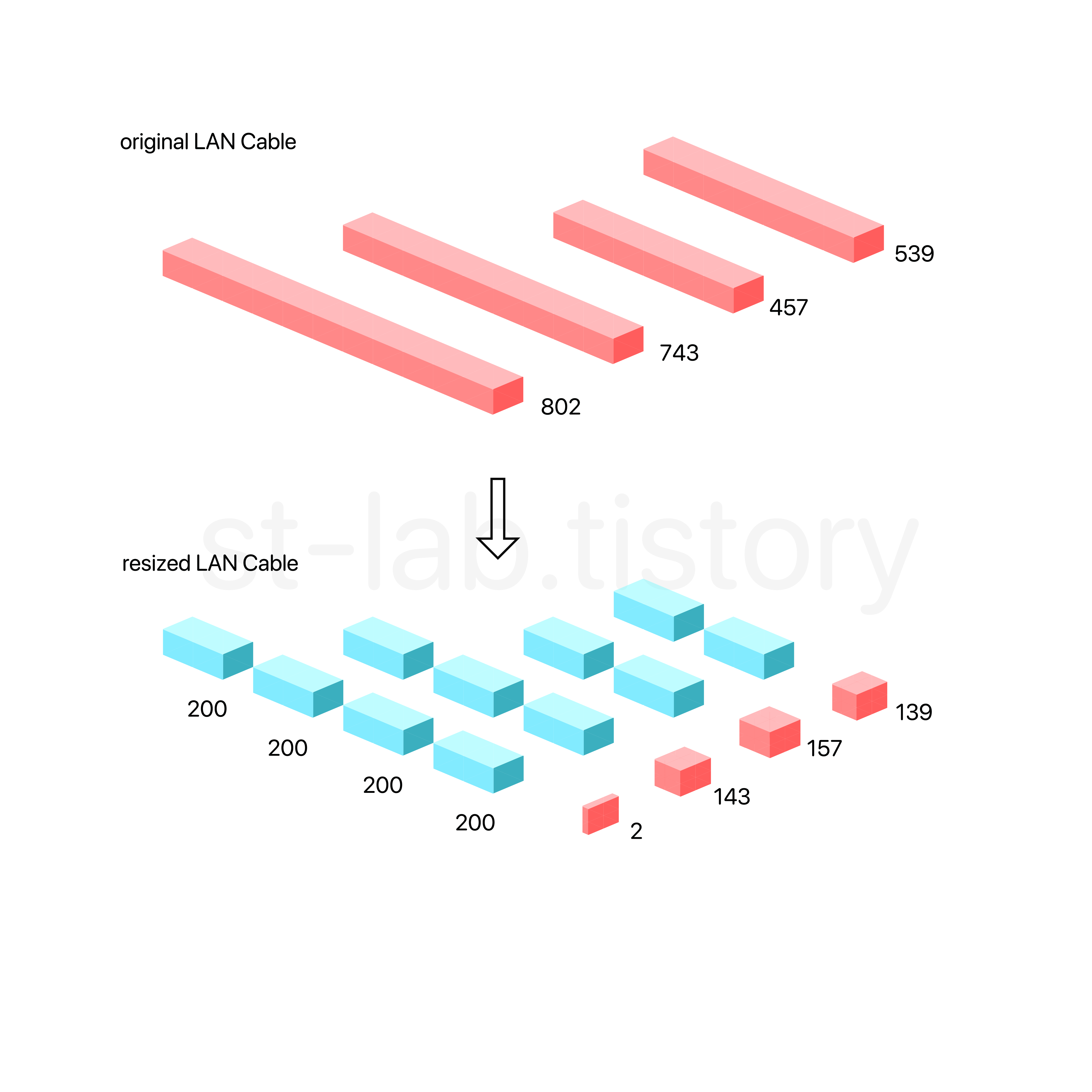 539 길이의 랜선은 201씩 2개로 402,