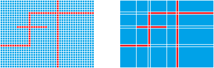 보면 각 블럭(좌표)을 새로운 그리드로 각 선분의 정점만 좌표로 두고 나머지 불필요한 좌표는 모두 지웠다.