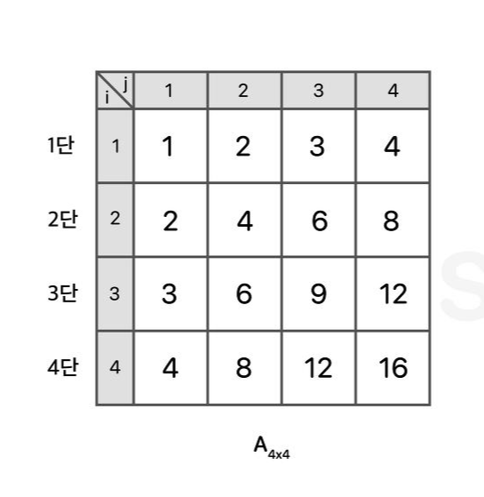 바로 각 행 혹은 열이 위와 같이 일종의 구구단이 되기 때문이다.