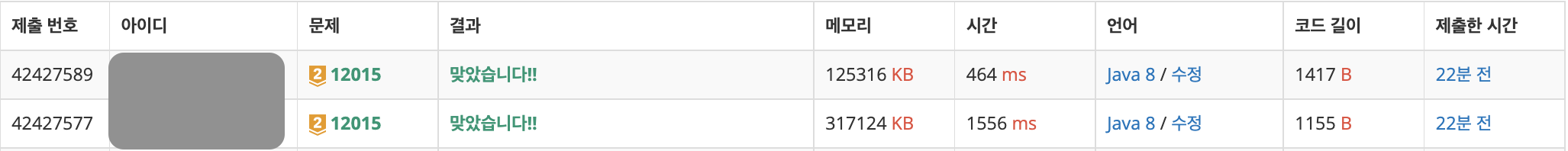 그렇다고 위 문제에서 작성한 코드를 그대로 제출하면 시간초과가 발생할 것이다. 그도 그럴 것이 시간 제한은 같음에도 입력받는 배열의 길이부터가 다르다.