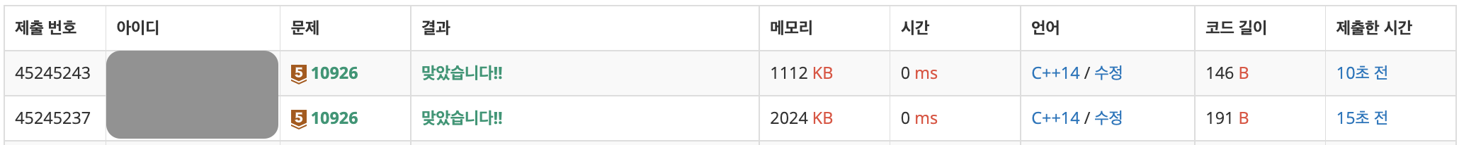 채점 번호 : 45245237 - 방법 1 : string 클래스 사용