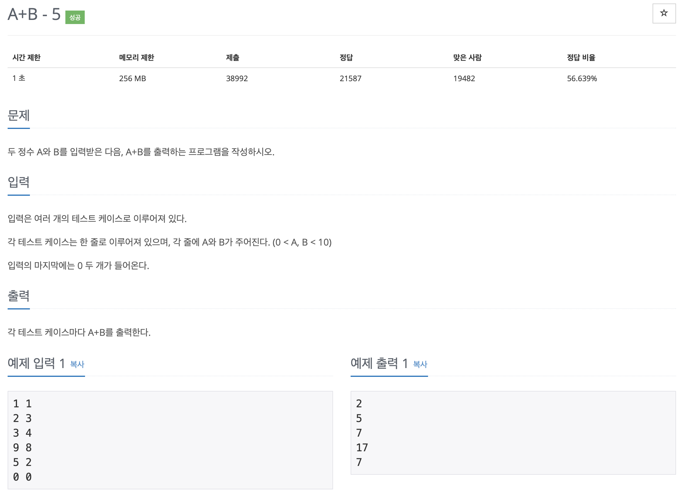 [백준] 10952번 : A+B - 5 -JAVA [자바]
