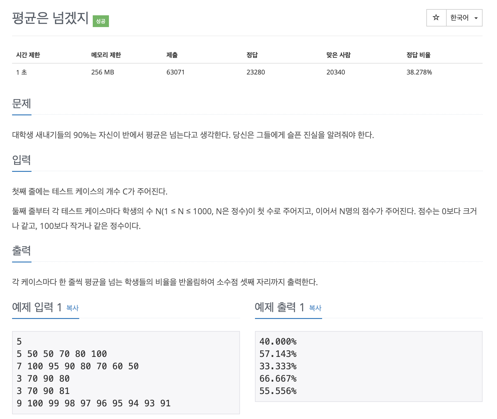 https://www.acmicpc.net/problem/4344
