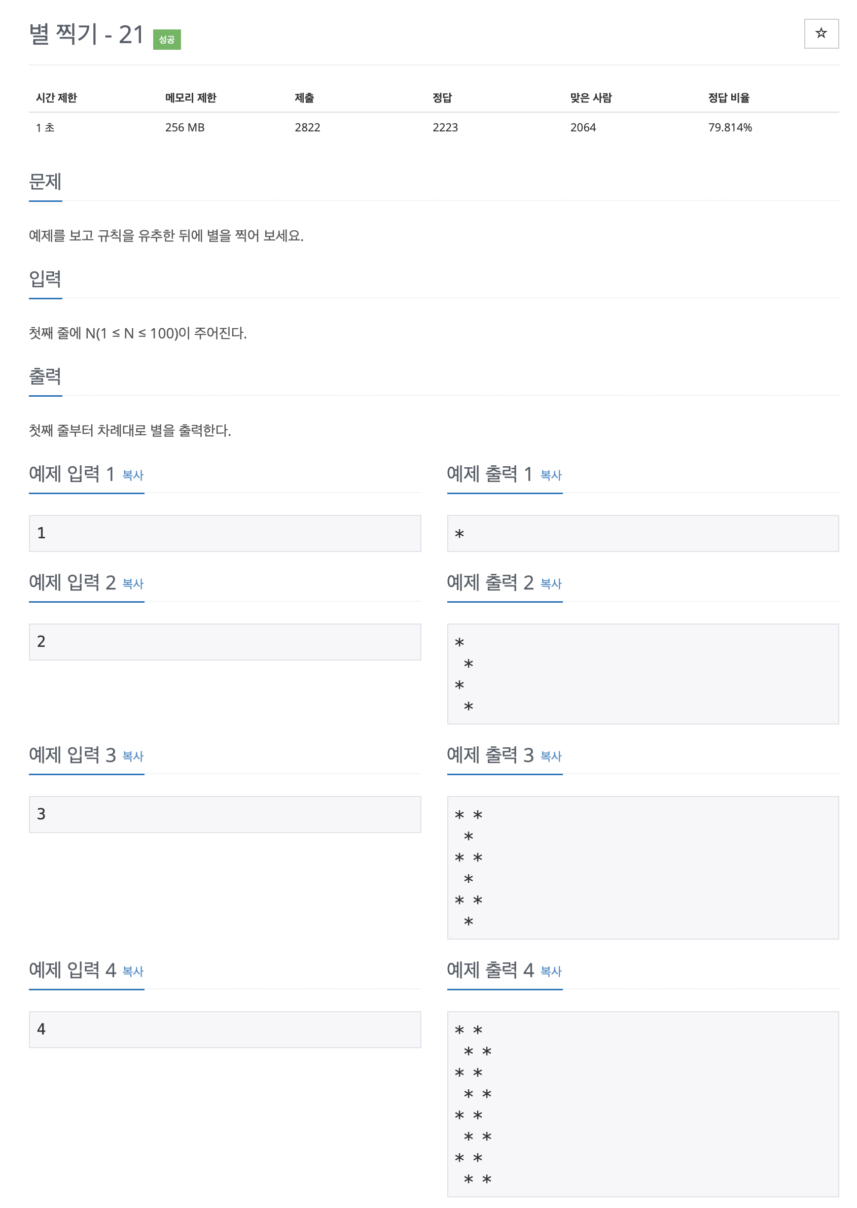 [백준] 10996번 : 별 찍기 - 21 - JAVA [자바]