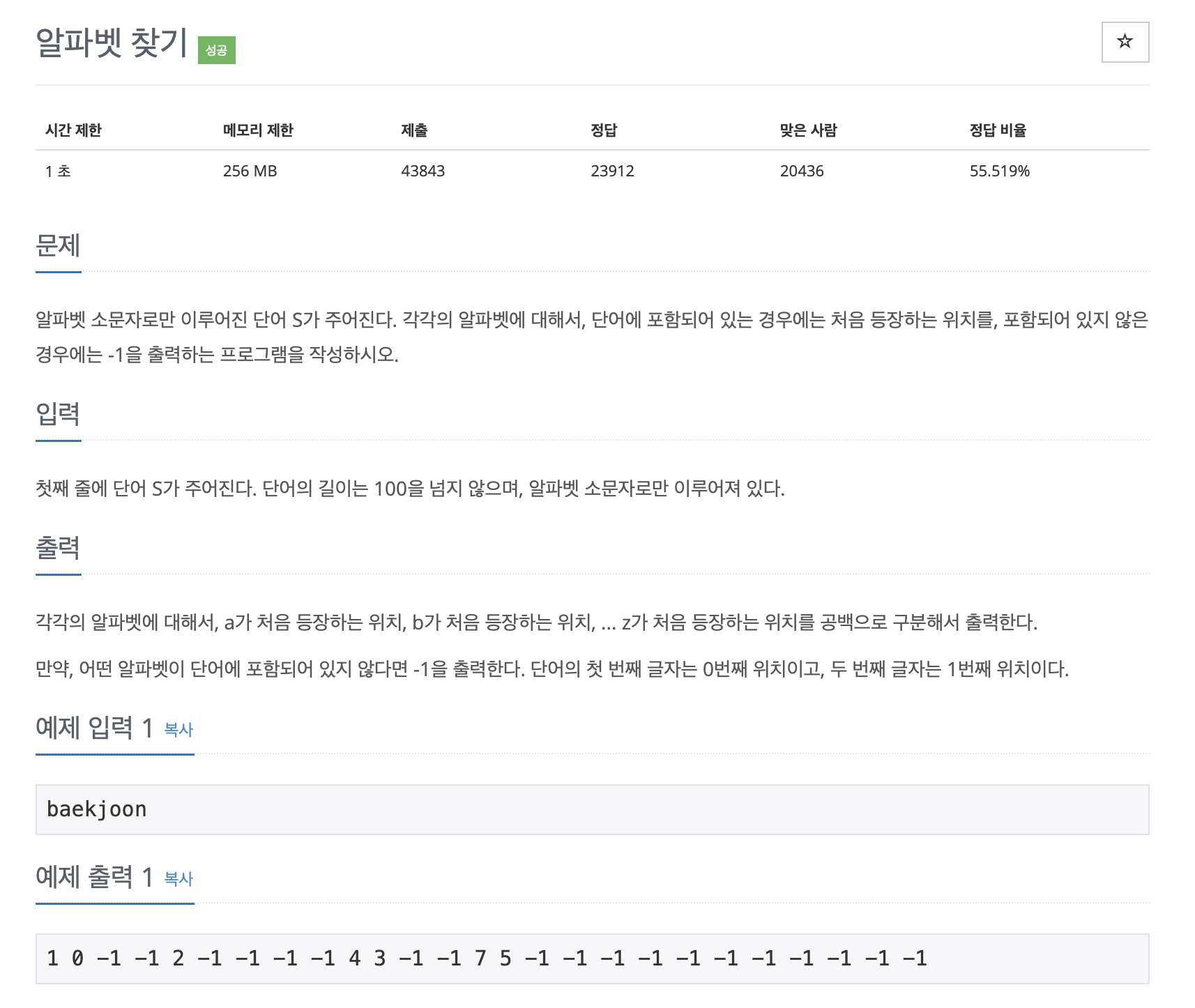 10809번: 알파벳 찾기