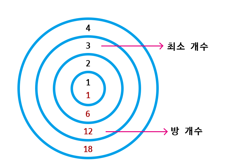 int count = 1; // 겹 수(최소 루트)