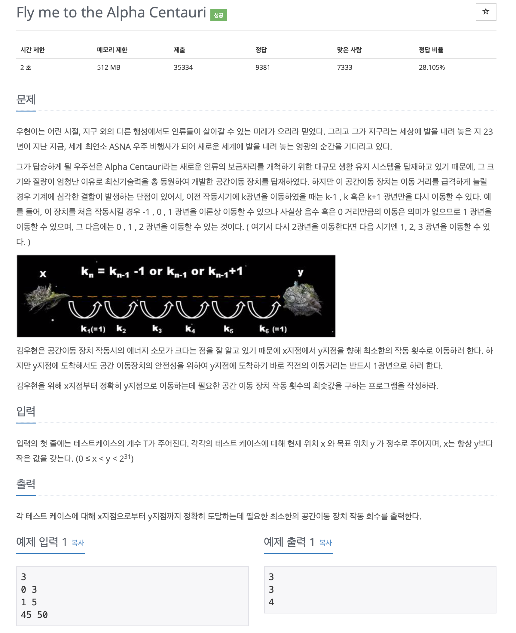 [백준] 1011번 : Fly me to the Alpha Centauri - JAVA [자바]