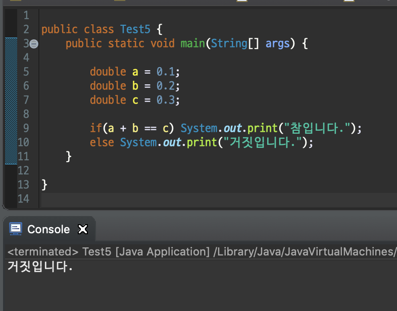 이러한 특성으로 인해 조금의 오차가 있을 경우 두 실수는 같지 않을 수도 있다.